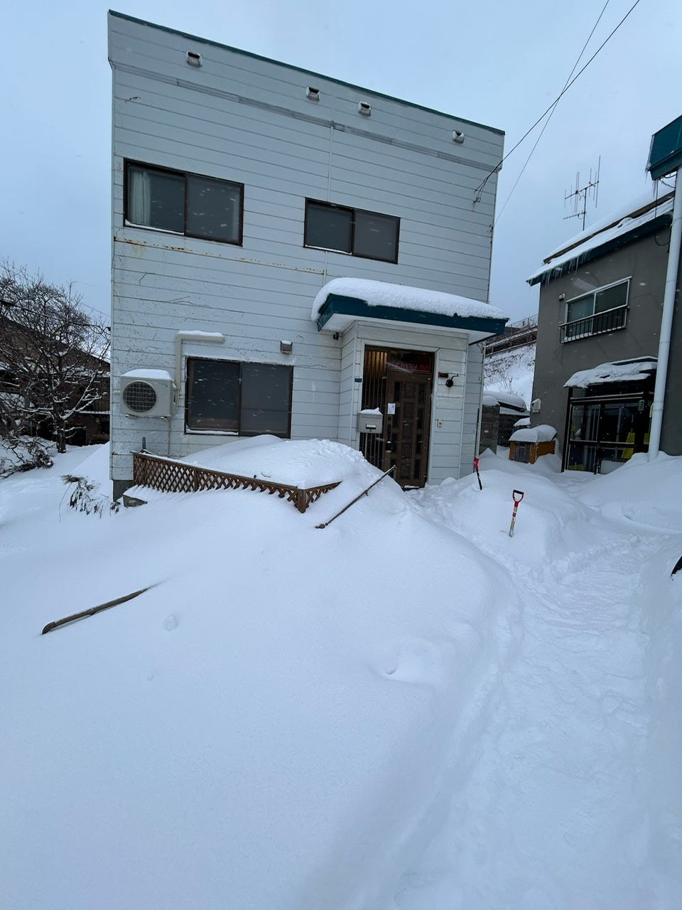 If it’s a snowy town, you need somewhere to shovel and dump snow. We got lucky our house has a side plot. Without one, you might need to hire a truck service to haul it off. Towns on the sea of Japan coast can get 50 feet of snow in a season.